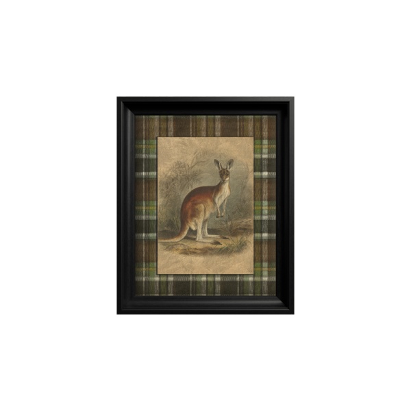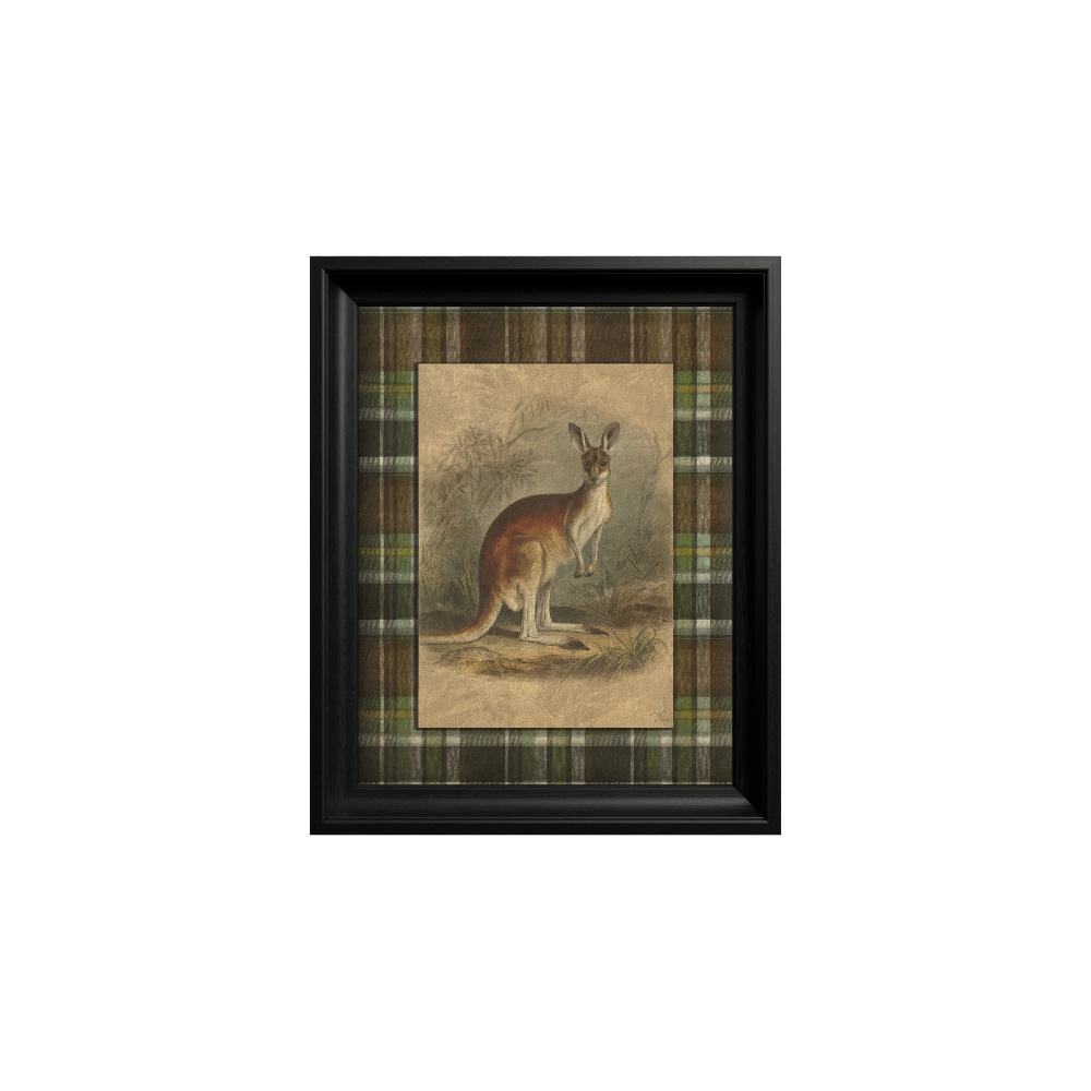 Fundalul clasic cu model carouri tartan creează un mix cultural interesant, încadrând fauna emisferei sudice într-o estetică europeană tradițională. Parte a colecției "Heritage Menagerie" și înrămat în negru, tabloul este o piesă de conversație excelentă, evocând curiozitate, aventură și unicitate.